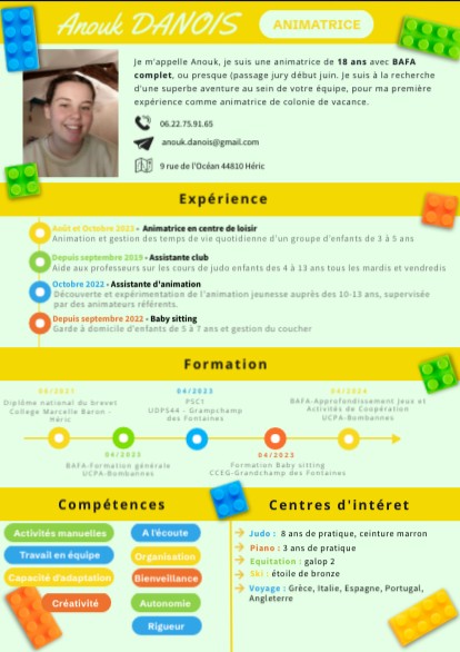 Je m'appelle Anouk, je suis une animatrice de 18 ans avec BAFA complet, ou presque (passage jury début juin. Je suis à la recherche d'une superbe aventure au sein de votre équipe, pour ma première expérience comme animatrice de colonie de vacance.