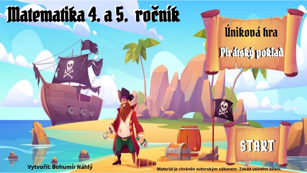Tvá loď ztroskotala a dostal/a ses na opuštěný ostrov. Jsou tady ale piráti a ti se chtěji zmocnit vzácného pokladu. Musíš jim v tom zabránit! Projdi všech 5 ostrovů a na každém získáš část celého pokladu a taky kódy, kterými odemkneš truhlu s pokladem.