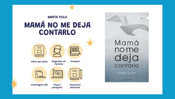 Nom: Mamá no me deja contarlo Autor/a: Cathy glass Editorial: Harper Bolsillo Any d’edició: 2019 ISBN: 978-84-17216-42-9 Número de pàgines: 382 Gènere: Narrativa Traductor: Sonia Figueroa Martín