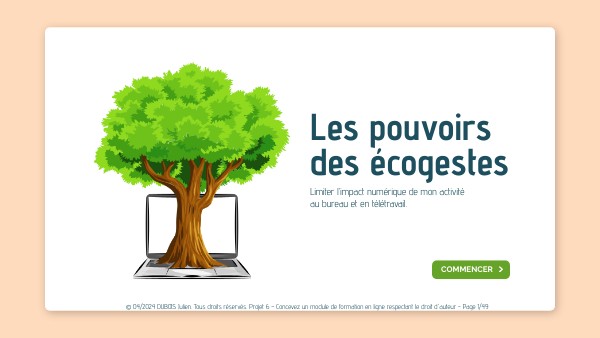 © 04/2024 DUBOIS Julien. Tous droits réservés. Projet 6 – Concevez un module de formation en ligne respectant le droit d'auteur - Page 1/49