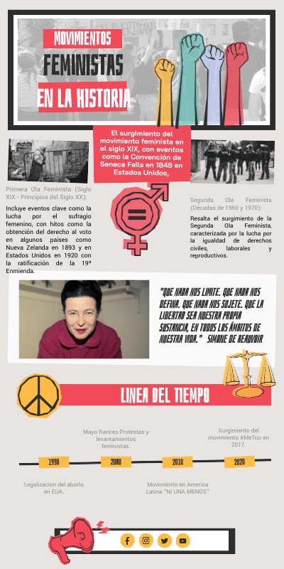 Segunda Ola Feminista (Décadas de 1960 y 1970): Resalta el surgimiento de la Segunda Ola Feminista, caracterizada por la lucha por la igualdad de derechos civiles, laborales y reproductivos.