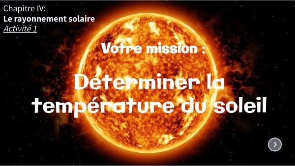 Le code secret pour terminer l'activité est la valeur trouvée précédemment pour la température (en Kelvin) du soleil.