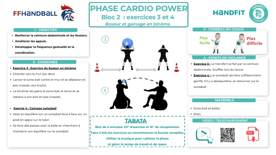 - Exercice 3 : Le transfert se fait par la ceinture abdominale. Souffler lors du lancer.