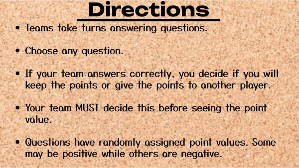 If answered correctly, player decides whether to keep or give points away BEFORE seeing point value