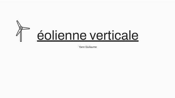 Le projet vise a concevoir une éolienne vericale innovante a l'aide de SolidWorks pour une meilleurs utilisation de l'énergie éolienne. L'éolienne sera conçue pour s'adapter aux environnements urbains et ruraux