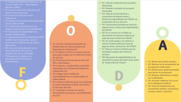 - O2. Fortalecer al CAU con nuevos recursos para poder cumplir con la Visión de la mesa de servicios