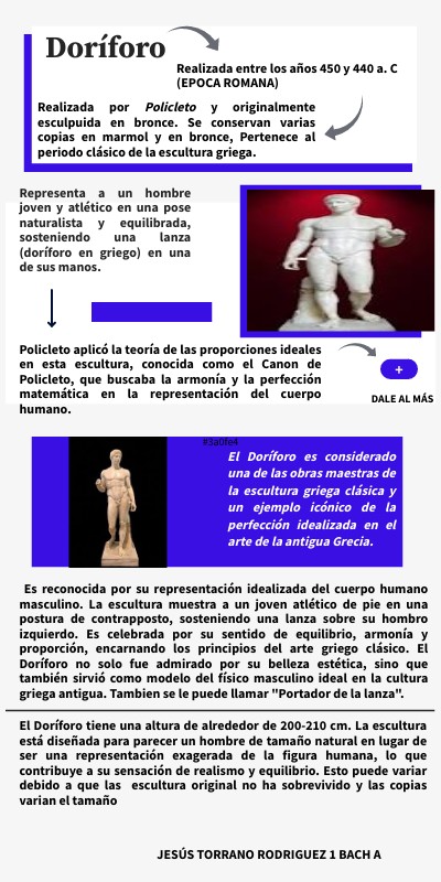 El Doríforo es considerado una de las obras maestras de la escultura griega clásica y un ejemplo icónico de la perfección idealizada en el arte de la antigua Grecia.