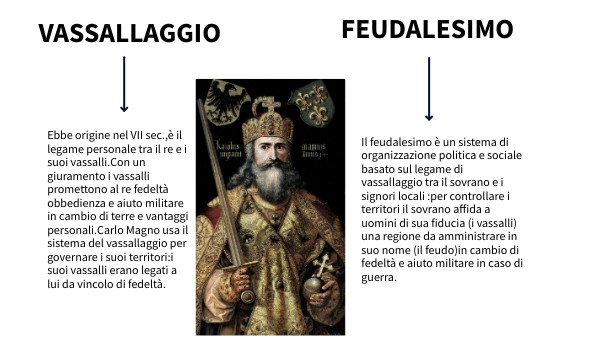 Ebbe origine nel VII sec.,è il legame personale tra il re e i suoi vassalli.Con un giuramento i vassalli promettono al re fedeltà obbedienza e aiuto militare in cambio di terre e vantaggi personali.Carlo Magno usa il sistema del vassallaggio per governare i suoi territori:i suoi vassalli erano legati a lui da vincolo di fedeltà.