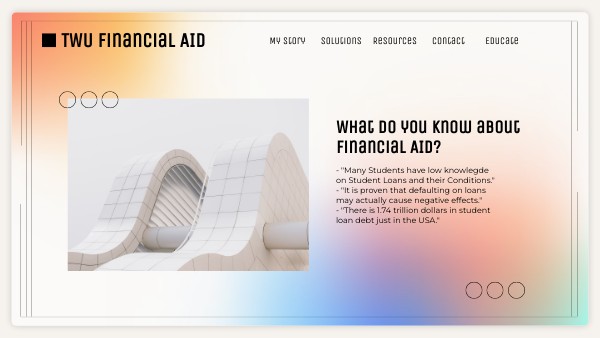 - "Many Students have low knowlegde on Student Loans and their Conditions." - "It is proven that defaulting on loans may actually cause negative effects." - "There is 1.74 trillion dollars in student loan debt just in the USA."