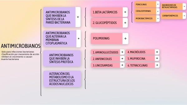 - Subgrupos: penicilinas, cefalosporinas, carbapenémicos, monobactamas e inhibidores de betalactamasas.
