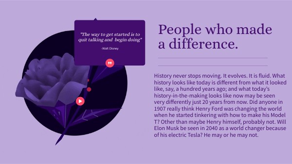 History never stops moving. It evolves. It is fluid. What history looks like today is different from what it looked like, say, a hundred years ago; and what today’s history-in-the-making looks like now may be seen very differently just 20 years from now. Did anyone in 1907 really think Henry Ford was changing the world when he started tinkering with how to make his Model T? Other than maybe Henry himself, probably not. Will Elon Musk be seen in 2040 as a world changer because of his electric Tesla? He may or he may not.