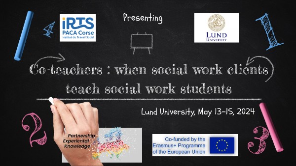 - TRAINING SESSIONS : 84 h training of a group of 20 social services users to become co-teachers for SW students, joined by 7 SW students in their first year of study.