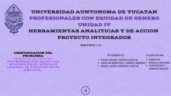 Universidad Auntonoma de YucatanProfesionales con Equidad de Genero Unidad IV HERRAMIENTAS ANALITICAS Y DE ACCION PROYECTO INTEGRADOR