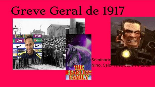 As Greves Gerais de 1917 foram uma série de greves das indústrias, causadas pela indignação dos operários e comerciantes com o salário e condições de trabalho, as greves começaram 12 de junho de 1917 e o mundo vivia a primeira guerra mundial. Países como o Brasil se encontravam em instabilidade econômica causada por falta de alimentos e inflação.