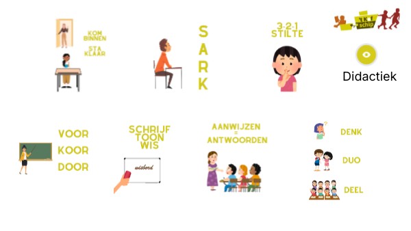 1 Je juf of meester zegt: 'Eeeeeeen.. SARK.' Stil maken Armen over elkaar Rechtop zitten Kijken naar juf of meester 2 Je juf of meester geeft je pas uitleg wanneer iedereen kijkt.