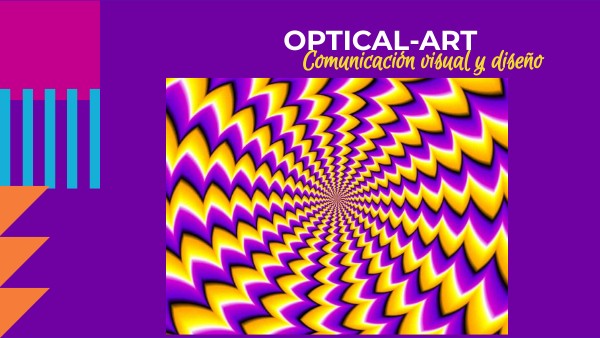 ¿QUÉ ES EL ARTE ÓPTICO? Es una corriente artística perteneciente a la abstracción. Utiliza las ilusiones ópticas, sensación de movimiento en superficies bidimensionales. Se basa principalmente en la representación pictórica de un fenómeno óptico que da la sensación de que está en movimiento.