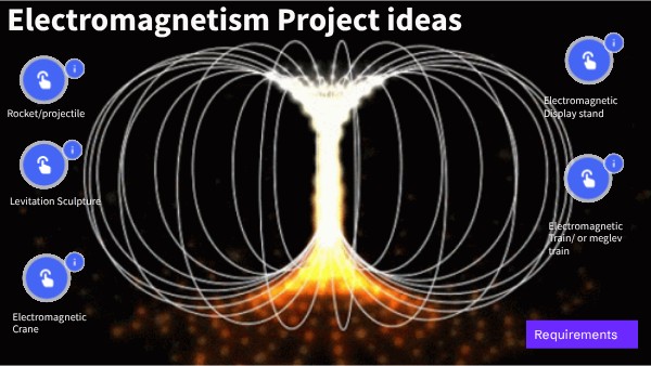 Magnetic Levitation Sculpture:In this project students will design, build, and refine a sculpture that levitates using electromagnetism. The goal is to create an aesthetically pleasing sculpture that floats in mid-air using magnetic forces.