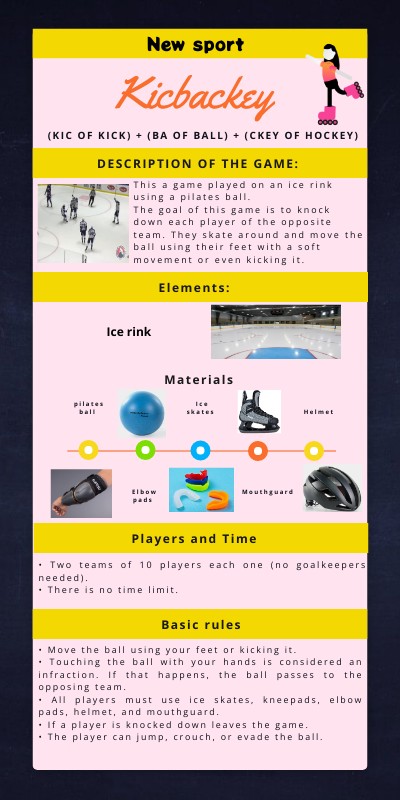This a game played on an ice rink using a pilates ball. The goal of this game is to knock down each player of the opposite team. They skate around and move the ball using their feet with a soft movement or even kicking it.