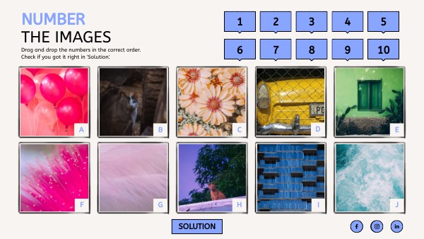 Drag and drop the numbers in the correct order.Check if you got it right in 'Solution'.