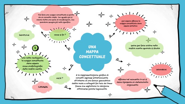 Per fare una mappa concettuale si parte da un concetto vasto. Da questo poi si creano tutta una serie di ramificazioni, che scendono sempre più nello specifico.