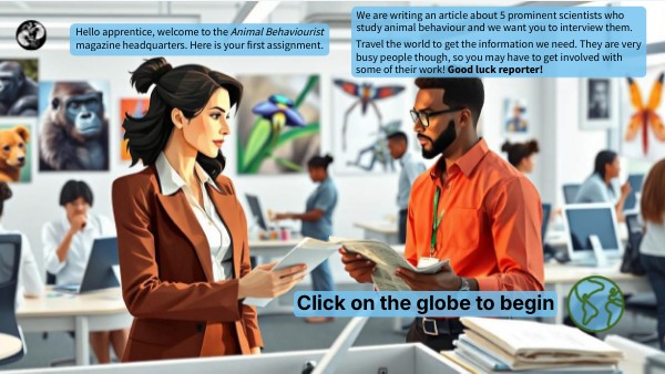 Hello apprentice, welcome to the Animal Behaviourist magazine headquarters. Here is your first assignment.