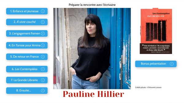 Source : Pauline Hillier, ex-Femen, présente son troublant roman autobiographique à Ploërmel. Ouest-France (en ligne), 19/10/2023 (consulté le 01/05/2024). Disponible sur : https://www.ouest-france.fr/culture/livres/pauline-hillier-ex-femen-presente-son-troublant-roman-autobiographique-a-ploermel-f42d3d2a-6e7c-11ee-98fd-eadf136a8465