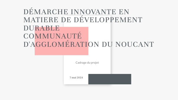 DÉMARCHE INNOVANTE EN MATIERE DE DÉVELOPPEMENT DURABLECOMMUNAUTÉ D'AGGLOMÉRATION DU NOUCANT