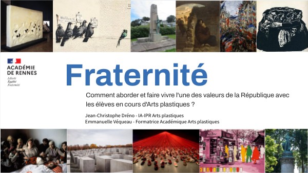 Cette ressource propose aux professeurs d’Arts plastiques 6 pistes pédagogiques pour s’approprier et faire vivre, en situations d’enseignement, l’une des Valeurs de la République : Elle invite le professeur à penser sa contribution à la réflexion partagée sur le parcours Citoyen et l’Enseignement Moral et Civique, en appui sur les programmes disciplinaires et en particulier les domaines de compétences - "S’exprimer, analyser sa pratique, celle de ses pairs ; établir une relation avec celle des artistes, s’ouvrir à l’altérité " et "Se repérer dans les domaines liés aux arts plastiques ; être sensible aux questions de l'art." Le parti-pris est de mettre en regard des œuvres choisies, d’époques variées et présentes en partie sur le territoire breton, avec des pistes de pratiques en classe pour engager avec les élèves le questionnement sur la fraternité et ses représentations artistiques. Il s’agit aussi de prendre appui sur des modalités pédagogiques favorisant l’expression des élèves et leur démarche de raisonnement, afin de développer l’esprit critique et de construire avec eux un sens commun.
