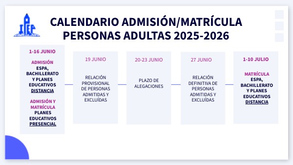 CALENDARIO ADMISIÓN/MATRÍCULA PERSONAS ADULTAS 2025-2026
