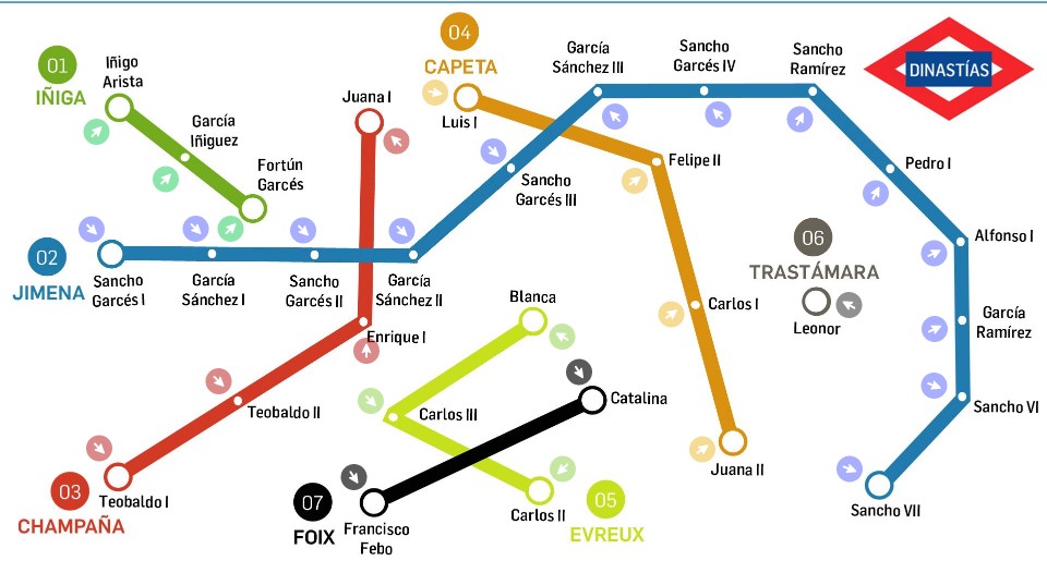 Dinastías de Navarra: líneas de metro