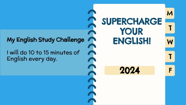 My English Study Challenge I will do 10 to 15 minutes of English every day.