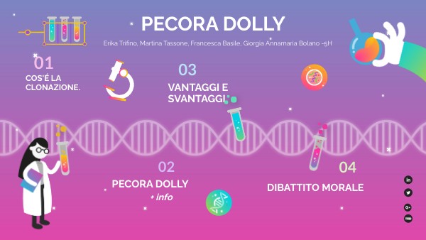 La pecora Dolly (5 luglio 1996 – Roslin, 14 febbraio 2003) è stata la prima pecora nonché il primo mammifero a essere stato clonato con successo da una cellula somatica, sebbene non il primo animale in assoluto a essere stato clonato con successoIl metodo utilizzato da Ian Wilmut per ottenere la clonazione a partire da una cellula somatica adulta consiste nel trasferimento del nucleo da quella cellula: i nuclei di cellule non appartenenti alla linea germinale del donatore vengono trasferiti in cellule embrionali denucleate (private del proprio nucleo) e quindi indotti ad avviare lo sviluppo del feto tramite elettroshock e successiva impiantazione in una madre surrogata. Difatti Dolly ha avuto tre madri: una fornente il nucleo di una cellula non germinale e quindi il DNA (la vera pecora clonata), un'altra la cellula embrionale denucleata e l'ultima è la madre surrogata.[8] Tramite tale metodo, Dolly è stata clonata nel 1996 a partire da una cellula somatica di una pecora donatrice di 6 anni..
