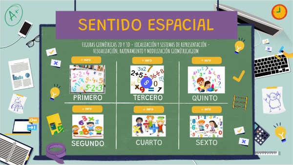 El Sentido Espacial está constituido por la identificación, representación y clasificación de formas, el descubrimiento de sus propiedades y relaciones, la descripción de sus movimientos y el razonamiento con ellas.