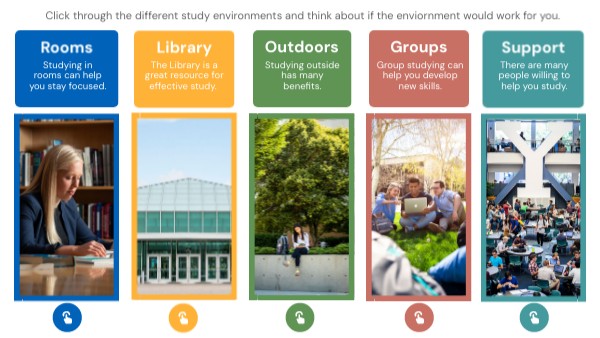 Click through the different study environments and think about if the enviornment would work for you.