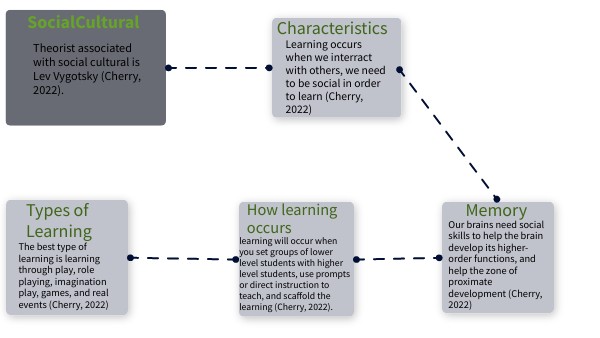 Theorist associated with social cultural is Lev Vygotsky (Cherry, 2022).