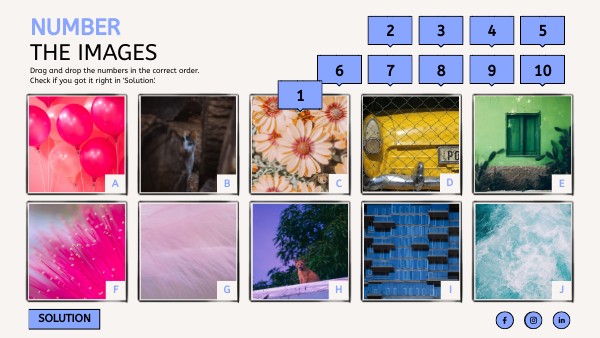 Drag and drop the numbers in the correct order.Check if you got it right in 'Solution'.