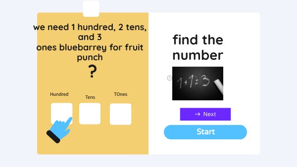 We need 1 hundred, 2 tens, and 3 ones bluebarrey for fruit punch