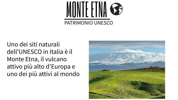 Uno dei siti naturali dell’UNESCO in Italia è il Monte Etna, il vulcano attivo più alto d’Europa e uno dei più attivi al mondo