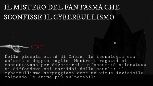 Mentre esploravano i loro ricordi e affrontavano i demoni del passato, ogni risposta corretta agli enigmi che si trovavano davanti li avvicinava alla libertà.Grazie a “Voce Libera”, la scuola cambiò. I corridoi divennero luoghi di supporto e gentilezza, e le ombre digitali iniziarono a svanire e Arianna divenne un simbolo di speranza, dimostrando che la luce della solidarietà può sconfiggere anche le tenebre più profonde. Risolvi gli enigmi e aiuterai Arianna e i suoi amici a ritrovare i ricordi più belli ed uscire dall’incubo del cyberbullismo.
