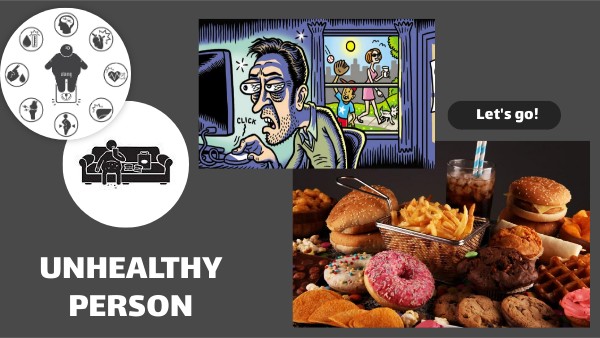 An unhealthy person can have various problems not only with nutrition but also with a lack of physical education: -When you aren't doing sport;you get fat, but not only that.The brain is less active, you have less strength and endurance -The OMS reccomandations: "Regular physical activity, for example walking, cycling or playing sports, brings significant benefits to health. One of our body's first reactions to a sedentary lifestyle is a less reactive brain and a decrease,initially imperceptible,in concentration and memory levels