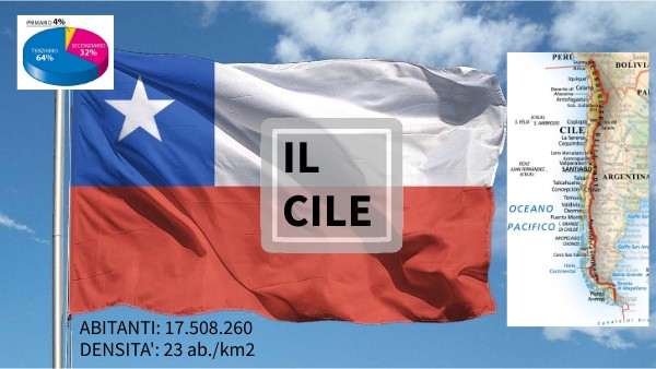 CINQUE REGIONI NATURALI: -NORTHE GRANDE: vette e altopiani. Ande, DESERTO di ATACAMA e cordigliera DOMEYKO -NORTHE CHICO: semiarido con vette più alte (OJOS DEL SALADO) -ZONA CENTRAL: regione più popolata -ZONA SUR: umida con fiumi e laghi -CILE AUSTRAL: capo Horn, costa frastagliata con FIORDI