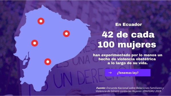 En Ecuador, la violencia obstétrica fue apenas definida en 2018 mediante la Ley Orgánica Integral para la Prevención y Erradicación de la Violencia Contra las Mujeres. Según esta ley, la violencia obstétrica se refiere a "toda acción u omisión que limite el derecho de las mujeres, embarazadas o no, a recibir servicios de salud gineco-obstétricos [...], impactando negativamente en la calidad de vida y salud sexual y reproductiva de mujeres en toda su diversidad y a lo largo de su vida, cuando esta se realiza con prácticas invasivas o maltrato físico o psicológico.