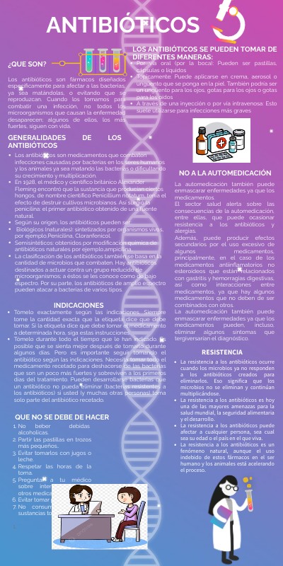 - Tómelo durante todo el tiempo que le han indicado. Es posible que se sienta mejor después de tomarlo durante algunos días. Pero es importante seguir tomando el antibiótico según las indicaciones. Necesita tomar todo el medicamento recetado para deshacerse de las bacterias que son un poco más fuertes y sobreviven a los primeros días del tratamiento. Pueden desarrollarse bacterias que un antibiótico no pueda eliminar (bacterias resistentes a los antibióticos) si usted (y muchas otras personas) toma solo parte del antibiótico recetado.