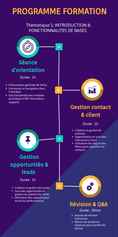 - Vue d'ensemble des modules principaux (CRM, facturation, support)