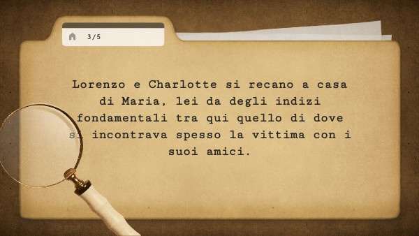 Lorenzo e Charlotte si recano a casa di Maria, lei da degli indizi fondamentali tra qui quello di dove si incontrava spesso la vittima con i suoi amici.