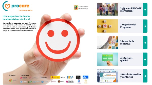 El Ayuntamiento de Marmolejo, comprometido con el bienestar de sus jóvenes, lleva a cabo por segundo año consecutivo la iniciativa PROCARE, desarrollada por la Universidad de Jaén. Esta iniciativa se centra en el diagnóstico del estado emocional de los adolescentes, buscando detectar posibles dificultades emocionales y proporcionar un apoyo adecuado para promover su salud mental. Gracias a esta colaboración, el municipio sigue apostando por la prevención y el cuidado integral de sus jóvenes, fortaleciendo el acompañamiento en esta etapa crucial de sus vidas.