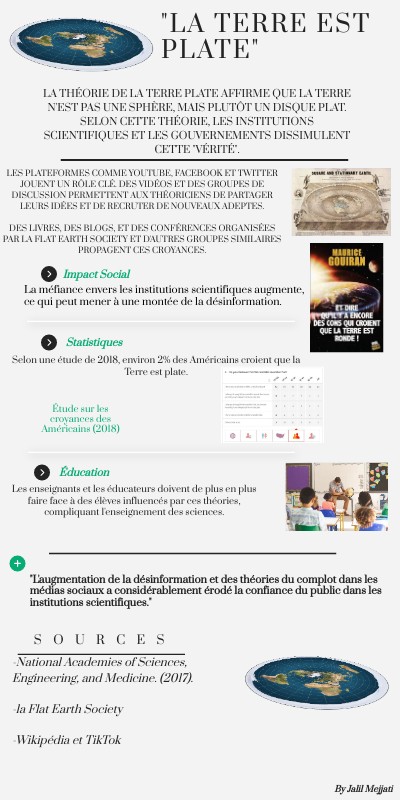 La théorie de la Terre plate affirme que la Terre n'est pas une sphère, mais plutôt un disque plat. Selon cette théorie, les institutions scientifiques et les gouvernements dissimulent cette "vérité".