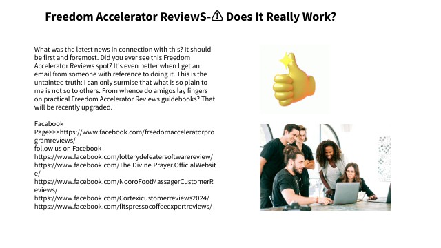 What was the latest news in connection with this? It should be first and foremost. Did you ever see this Freedom Accelerator Reviews spot? It's even better when I get an email from someone with reference to doing it. This is the untainted truth: I can only surmise that what is so plain to me is not so to others. From whence do amigos lay fingers on practical Freedom Accelerator Reviews guidebooks? That will be recently upgraded. Facebook Page>>>https://www.facebook.com/freedomacceleratorprogramreviews/ follow us on Facebook https://www.facebook.com/lotterydefeatersoftwarereview/ https://www.facebook.com/The.Divine.Prayer.OfficialWebsite/ https://www.facebook.com/NooroFootMassagerCustomerReviews/ https://www.facebook.com/Cortexicustomerreviews2024/ https://www.facebook.com/fitspressocoffeeexpertreviews/