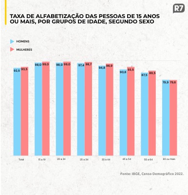 Taxa de alfabetização das pessoas de 15 anos ou mais, por grupos de idade, segundo sexo
