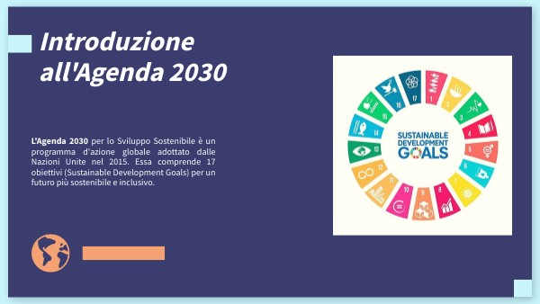 L'Agenda 2030 per lo Sviluppo Sostenibile è un programma d'azione globale adottato dalle Nazioni Unite nel 2015. Essa comprende 17 obiettivi (Sustainable Development Goals) per un futuro più sostenibile e inclusivo.